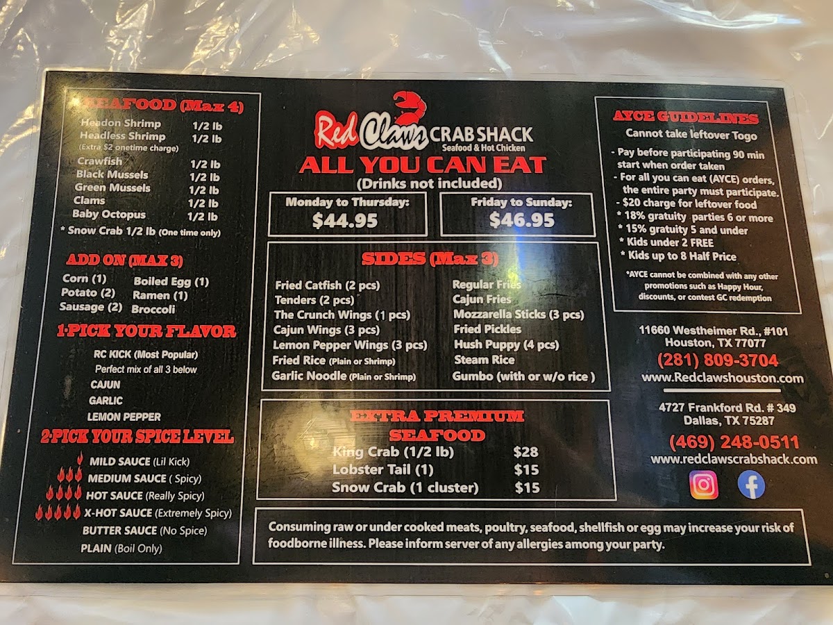 Welcome to Red Claws Crab Shack Seafood & Hot Chicken, a culinary gem located in Houston, TX. This vibrant eatery offers an impressive array of seafood and hot chicken delights that promise to tantalize your taste buds.
